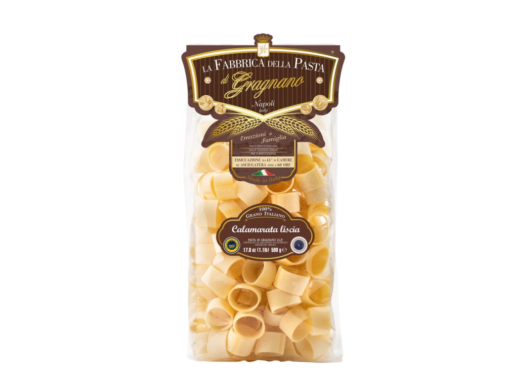 Přineste do své kuchyně esenci Neapole s Calamarata Liscia IGP, prémiovou pastou od rodinné firmy La Fabbrica della Pasta di Gragnano. Pasta di Gragnano IGP je označení, které zaručuje ruční zpracování, lokální suroviny a tradiční technologii. Gragnano je od 17. století střediskem výroby těstovin díky svému mikroklimatu a tvrdé vodě z Monte Lattari.