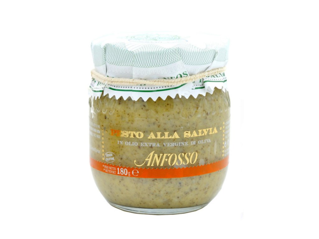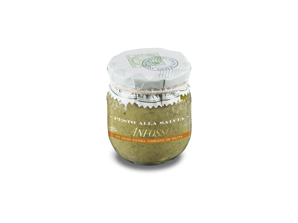 Objevte neobvyklou lahodnost z italské Ligurie: Pesto alla Salvia od rodinné firmy Anfosso. Toto pesto na bázi rehydratované šalvěje (48%) a prémiového extra panenského olivového oleje (40%) nabízí světle zelenou barvu, silnou aromatickou vůni a výraznou hořko-kořenitou chuť typickou pro šalvěj – méně „zeleninovou“ než klasické bazalkové pesto, ale mnohem intenzivnější a sofistikovanější.